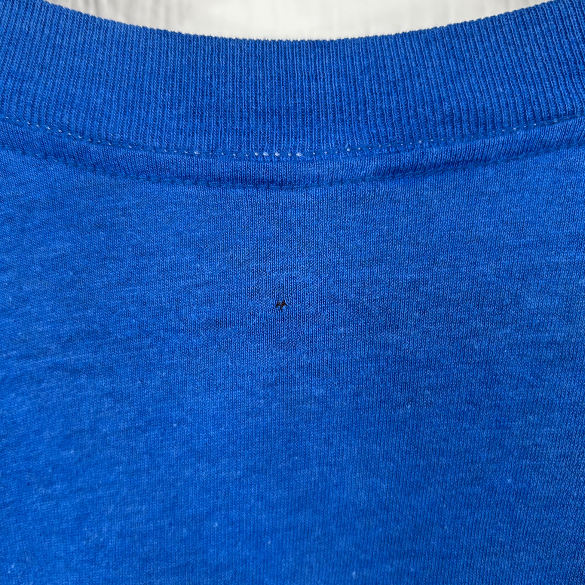 A very tiny pinhole sized hole is pictured. Please review all photos before purchasing.