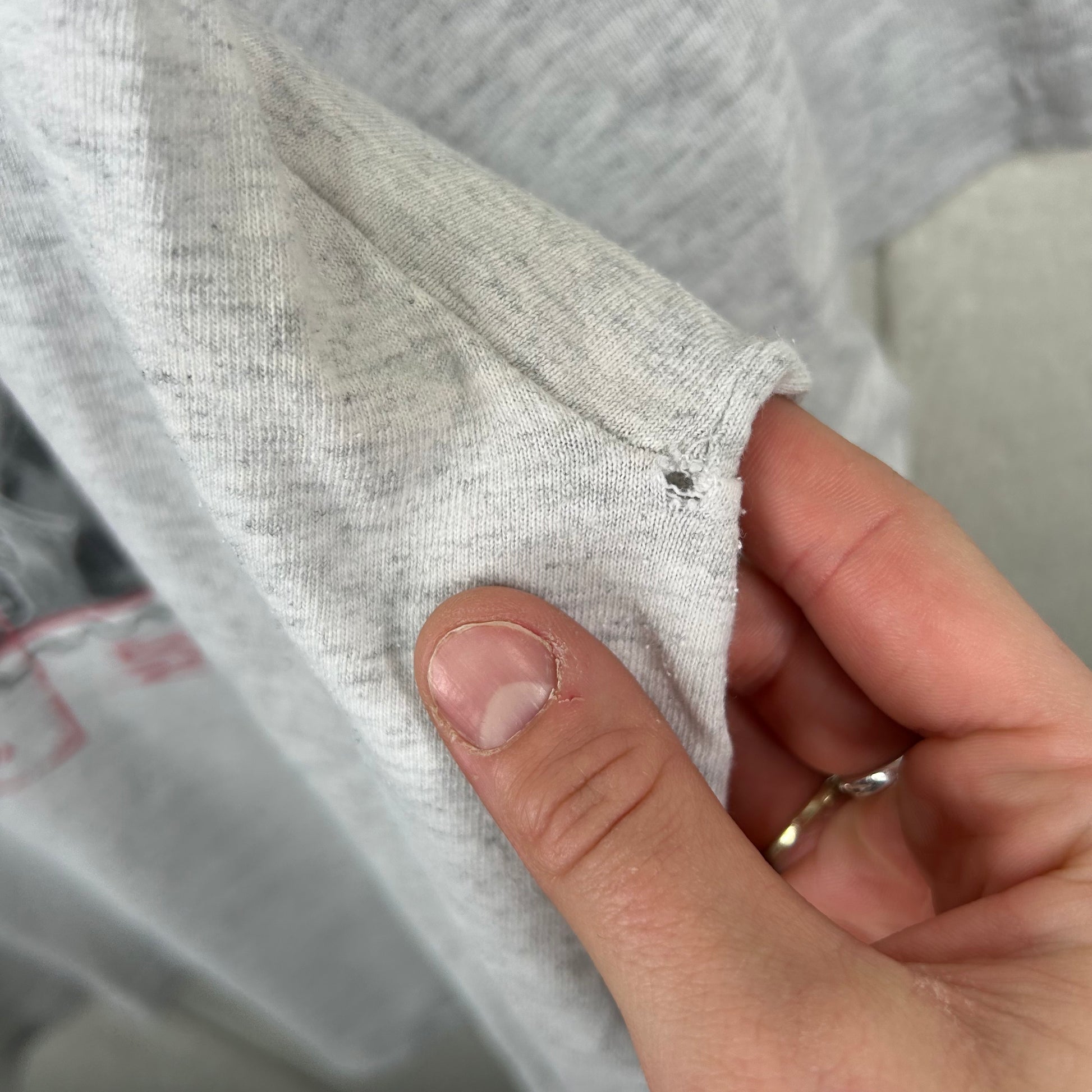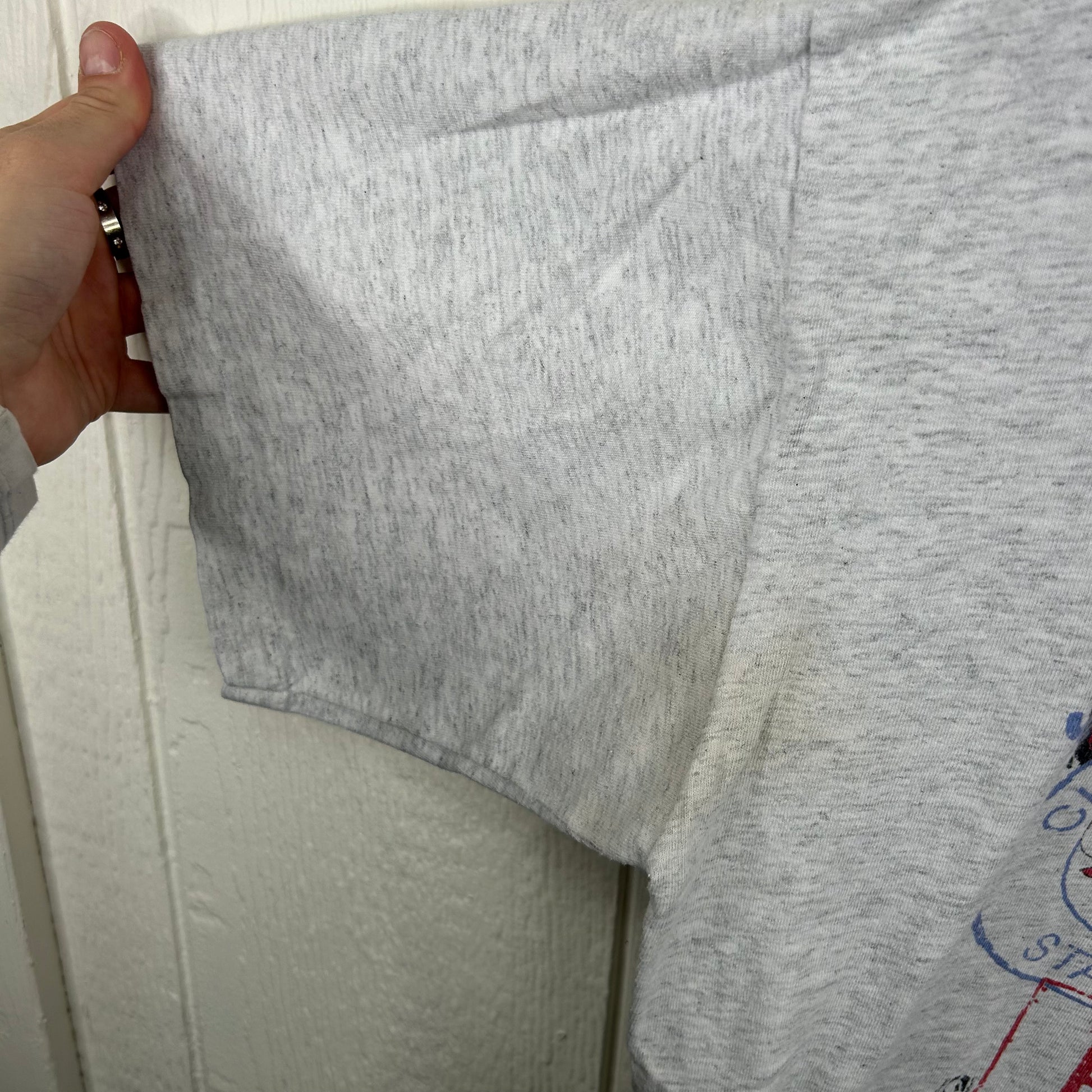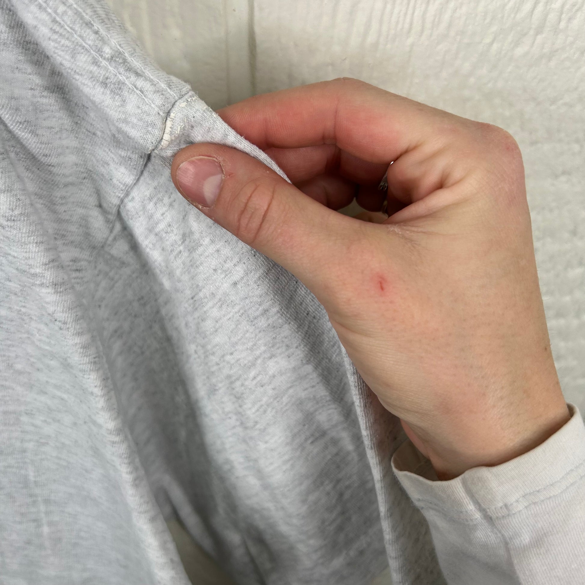 This item is vintage and has been previously worn. There are some armpit stains pictured and a small hole, please review all pictures before purchasing. All items are washed before purchase.