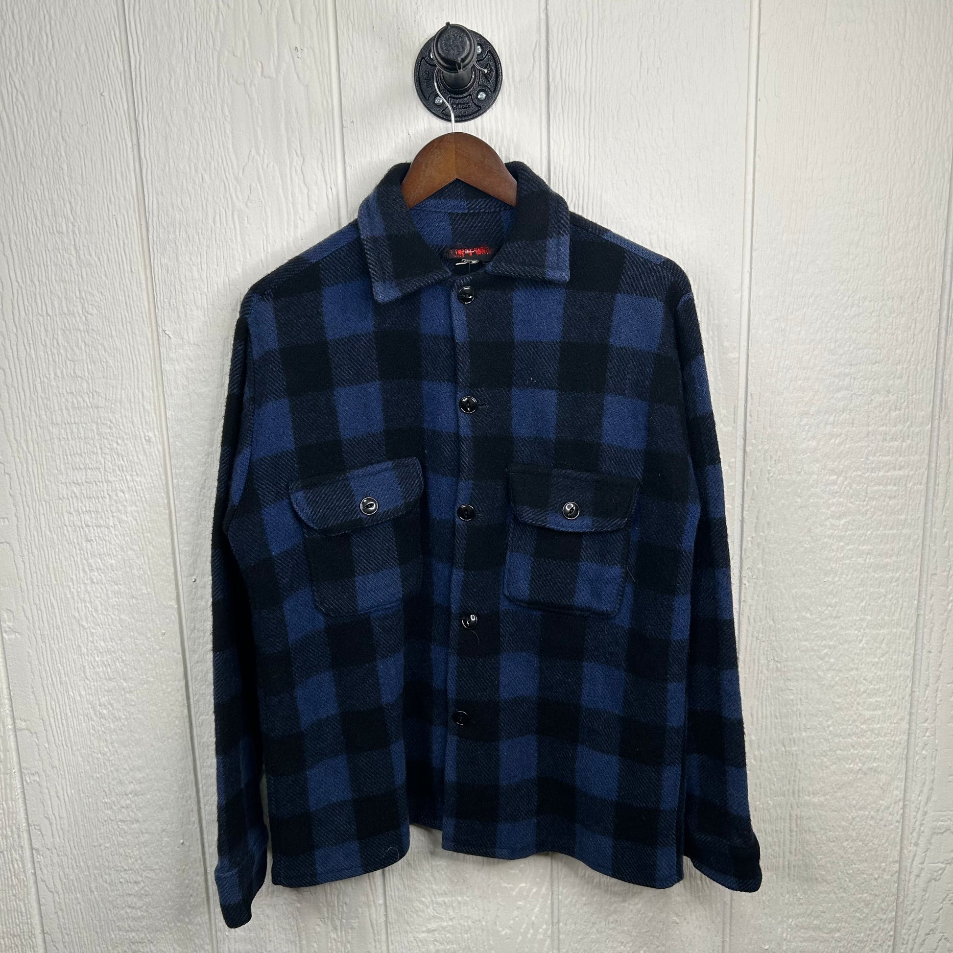 Vintage 80's Blue & Black Wool Button-Up Flannel (M) - $40