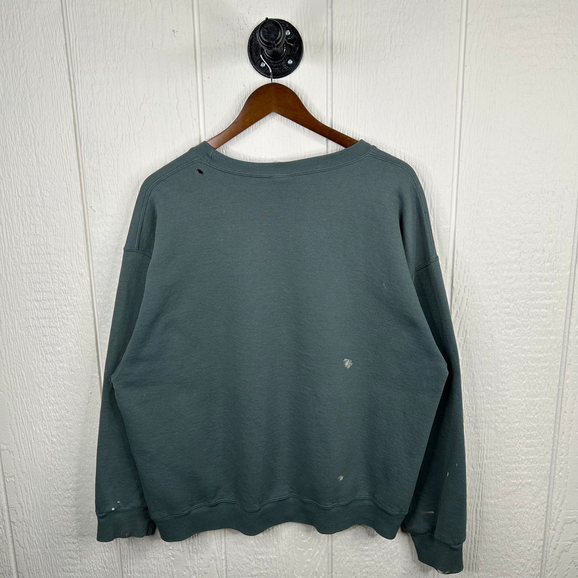 Vintage 90's Heavy Weight Thrashed Green Blank Crewneck (L)